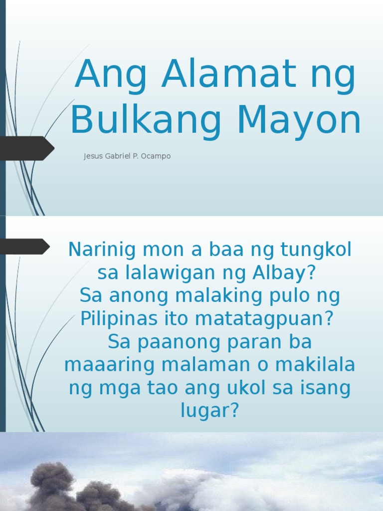 ANG ALAMAT NG BULKANG MAYON Rene O. Alamat ng Bulkang Mayon Buod at Aral ng Alamat ng Mayon 2021. Makitabi nalang ang mga walang libro.